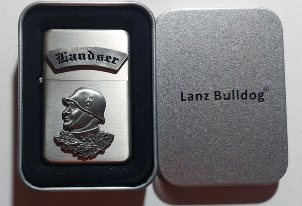 Lanz Bulldog Sturmfeuerzeug Satin mit Emblem Landser