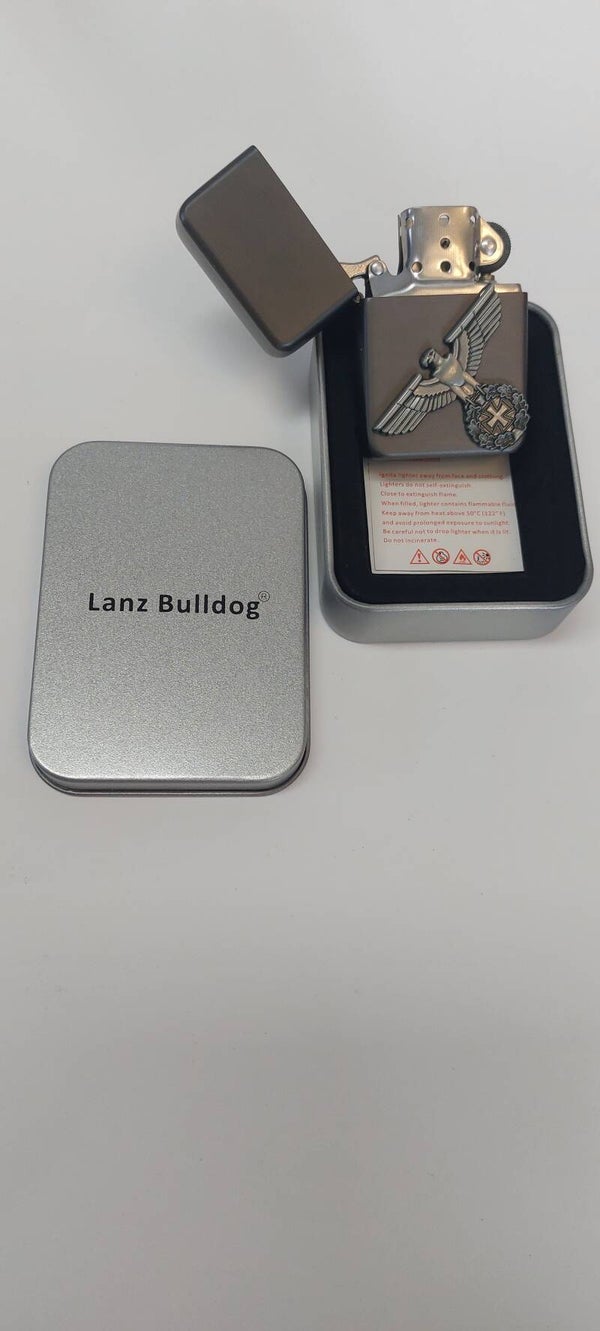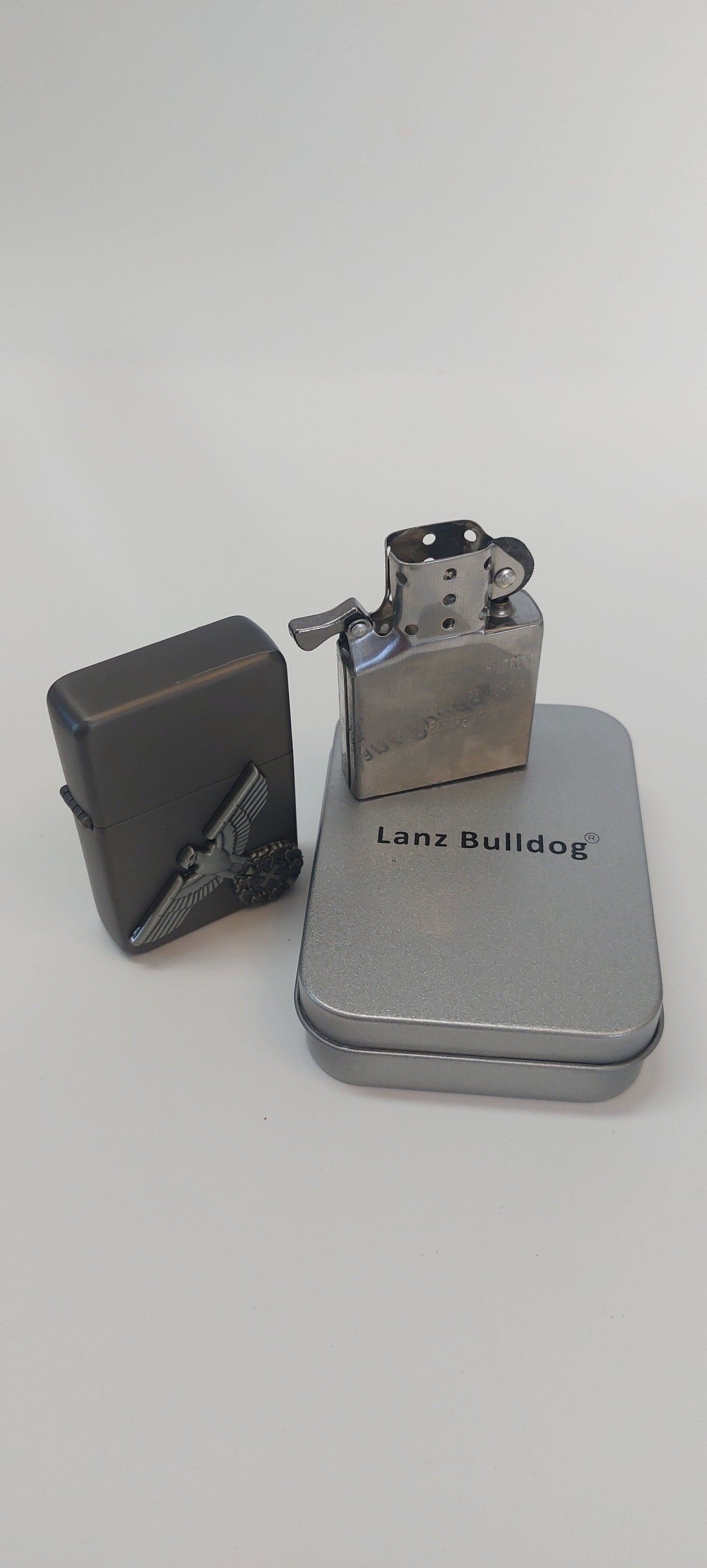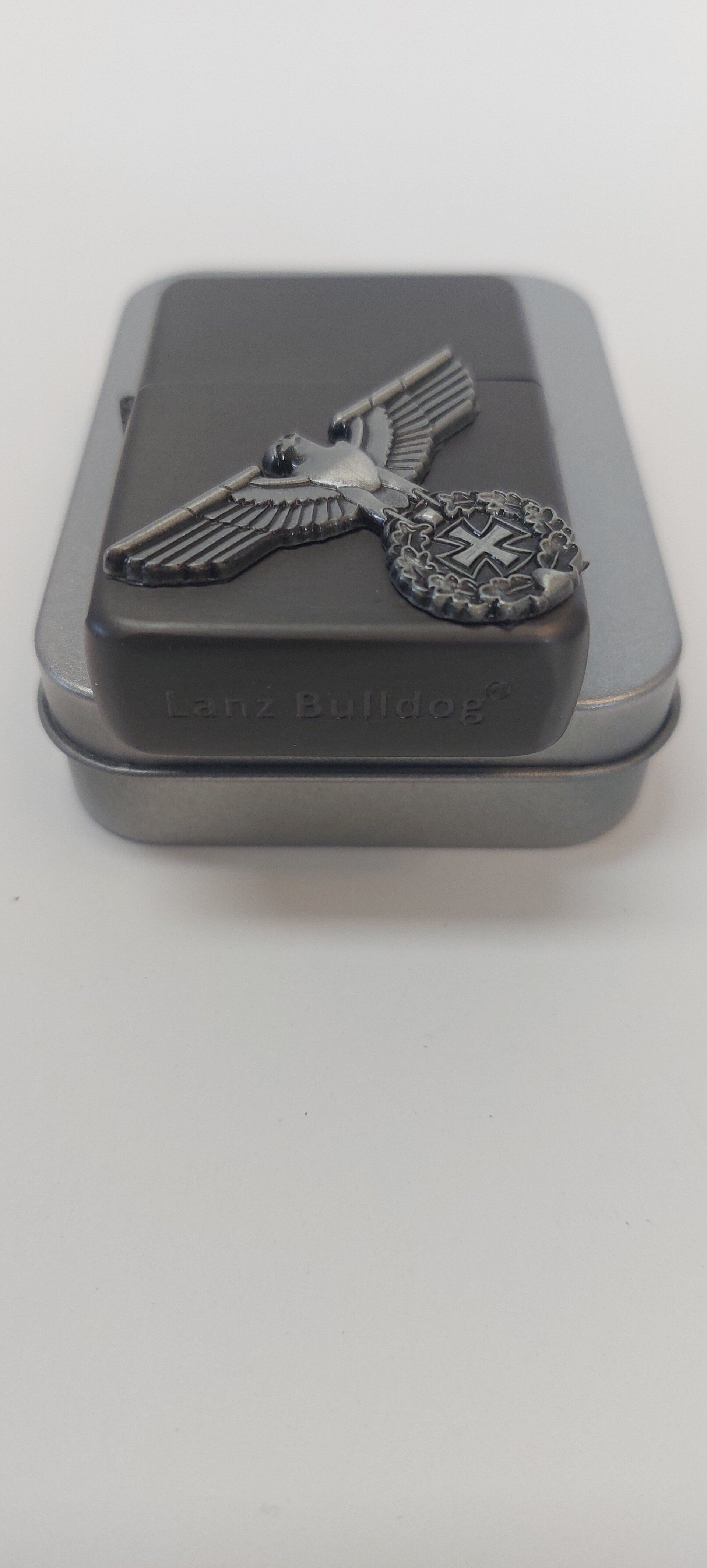 Lanz Bulldog Feuerzeug Gun Metall Reichsadler + EK WK2 Aufgesetzten Emblem